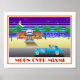 Imagem tropical Colorida Art Deco criada no Desenhar Corel pela artista Roanne Baldwin. Possui um restaurante prateado, palmeiras, lua crescente, flappers e Rolls Royce.