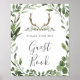 Dê aos seus hóspedes uma direção encantadora com o nosso cartaz de hóspedes de lenhador de cervos, com cor d'água verde eucalipto garland e uma elegante letra de estilo manuscrito.