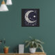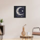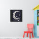 Diseño Sutil y Caprichoso: Presenta una luna caprichosa dibujada solo con contornos en blanco y negro, rodeada de acentos celestiales y estrellas brillantes que le dan un toque mágico y etéreo.