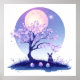 Uma maravilha tranquila da meia-noite com um coelho branco olhando para uma lua de cheio brilhante em uma cena noturna serena.