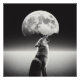 Um lobo solitário, sua silhueta encara a lua cheio luminosa. O lobo assombroso faz eco durante a noite.