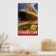 Vintage Cunard Line, poster de linha oceânica, mostrando uma imagem forte do navio RMS Lusitania, de quatro empilhagens, que embarcava do píer.