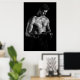 Esta poster apresenta uma fotografia dramática de um boxer musculado vestindo suas luvas de boxe