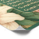 O Luxuoso Mapa de Assentos Alphonse Mucha Flora Green é uma graciosa interação de motivos botânicos e design ornamental. Florais delicados, videiras estilizadas e curvas elegantes fluem perfeitamente pela disposição, criando uma sensação de movimento e ritmo característica do design Art Nouveau. Esses elementos são cuidadosamente organizados no quadro para melhorar as informações de assentos, garantindo clareza sem comprometer a estética. A paleta de cores verdes desempenha um papel crucial no estabelecimento do tom luxuoso da peça. Tons ricos e sofisticados - como verde-sage, marfim, champanhe e tons profundos - são combinados com verde pastel e floresta. Essa combinação cria um contraste refinado que exala opulência, mantendo uma atmosfera suave e romântica. O uso de florais adiciona profundidade e dimensão, capturando a luz e chamando a atenção para elementos-chave do design. Os nomes podem ser facilmente personalizados no modelo.