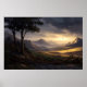 Uma paisagem majestosa onde a luz do ouro corta através do vale, desvendando a beleza silenciosa das montanhas e o mistério do céu tempestuoso. Esta trabalho de arte convida à profunda contemplação, mistura força e serenidade num equilíbrio visual impressionante.