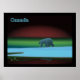 Um urso polar vagueia o gelo durante a longa noite polar; o Norte brilha em vermelho e verde à distância. A leitura de texto "Canadá" em azul e branco brilhantes também é exibida.