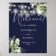 Esta placa de boas-vindas de casamento com luzes de corda florais verdes azul marinho pode ser personalizada com suas informações em tipografia elegante. Criado por Thisisnotme©