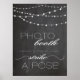 Luzes de festa rústicas em pôster de fundo de quadro-negro com "Pegue um acessório e faça uma pose" Placa de casamento. Adicione um toque especial ao seu casamento, mais placas de casamento em nossa loja! http://www.zazzle.co.uk/designbyredline