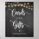 Esta placa de casamento editável, com bela caligrafia "Cartões e Presentes" na fazenda rústica, luzes de cordas, tema de design Chalkboard, é a decoração de casamento mais perfeita para seu dia especial.