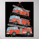 Poster Luzes de Natal de Caminhões de Bombeiros Árvore de