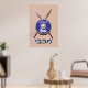 Uma representação do escudo de um Maccabee e duas lanças penduradas na parede. Batalha vestida e enferrujada, mas ainda servível. O escudo é enfeitado por um leão e o texto lendo "Yisrael" (Israel) no alfabeto paleohebraico. Maccabee também aparece no hebraico moderno. Os Macabeus eram rebeldes judeus que libertaram Judeia do jugo do Império Seleúcio. Chanukkah não é apenas um festival de inverno-médio com velas e iguarias fritas. celebra uma vitória militar, e garante a liberdade religiosa, sobre o Império Seleúcio. Além disso, a revolta foi uma guerra civil envolvendo aqueles judeus que eram leais ao G-d e aqueles que tinham adotado o Hellenismo dos Seleucids.