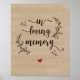Cartaz de casamento com videiras rústicas, Em memória amorosa, memorial, tema em madeira marrom