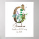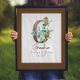 impressão de poster para recém-casados - com a letra G, monograma, de madeira rustica, de cor aquosa, eucalipto e flores de lavanda. Personalize com o nome do casal e a data do casamento.