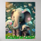 Poster Mãe de Elefante Fofa e Jardim de Flores do Bebê Ar