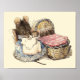 O desenho de Beatrix Potter mostra a Sra. Dorminhoco segurando seu novo bebê no berçário enquanto as outras crianças se balançam no berço.