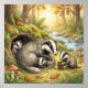 Uma ilustração doce e suave com uma mamãe texugo e seus filhotes, capturando um momento tranquilo no aconchegante mundo florestal de Ivory Nest.