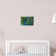 Print featuring a magnificent peacock with its beak open and its tail feathers open, showing off his beautiful iridescent green, blue and bronze colored feathers. Beautiful wall decor for bird and nature lovers. Photo taken in Arcadia, California.