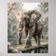 A majestic magnolia elephant moves gracefully through a royal garden where power meets floral elegance. Realistic elephant anatomy blends with magnolia petals, broad leaves, refined textures, and blooming accents across the shoulders, head, trunk, and back. Stone pathways, reflecting pools, marble details, gentle mist, and warm dawn light create an upscale serene atmosphere. This luxurious fantasy wildlife design adds beauty and presence to living rooms, offices, bedrooms, or gift collections. Perfect for elephant lovers, botanical decor fans, and statement interior styling.
