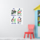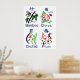 Poster Mahjong Flower Suits,Blue,Red,Green,Black on White