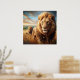 Um leão e leoa majestosos ficam orgulhosos em um campo pitoresco, sua magnífica mana fluindo no vento enquanto pesquisam seus arredores com graça real.