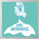 Uma ilustração da mão de uma pessoa segurando uma garrafa de maionese. O texto diz mais maionese. O mayo está se esgueirando. Um design para qualquer um que ama maionese.
