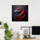 Um trabalho de arte surpreendente capturando a cabeça de um condor majestoso como um fóssil em granito. O estilo abstrato de arte em vermelho vivo e carvão cria uma cena dramática. Com uma perspectiva aproximada e ampliada, a representação evoca um sentimento de admiração, mostrando a beleza real deste pássaro magnífico congelado no tempo.