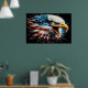 Águia majestosa mostrando a bandeira americana em sua cabeça, simbolizando força, liberdade e orgulho.