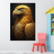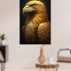 Majestic golden eagle portrait showing a detailed close-up of feathers, sharp beak and intense eye. Dramatic lighting emphasizes texture, strength and nobility for wildlife, conservation and emblematic design uses.