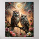 features two beautifully detailed owls perched on a branch beneath a glowing moon, surrounded by soft roses and dreamy twilight skies. This enchanting nature-inspired artwork blends wildlife, floral, and mystical fantasy elements for a romantic and elegant look. A lovely choice for owl lovers, bird enthusiasts, nature fans, and anyone drawn to magical moonlit artwork.
