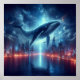Poster Majestic Whale Above Starlit City Skyline