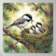 Uma ilustração doce e suave com uma Chickadee mãe e seus filhotes, capturando um momento tranquilo no mundo aconchegante da floresta do Ivory Nest.