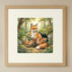 Uma ilustração doce e suave com uma raposa-mãe e seus filhotes, capturando um momento tranquilo no aconchegante mundo florestal de Ivory Nest.