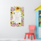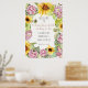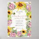 SINAL DE BOAS-VINDAS, com tipografia elegante, Bumblebee Sunflower Pink Hydrangeas, de Bumblebee, de Mamãe a abelha, para decoração do chá de uma menina. Abelhas com fundo de padrão de mel de ouro mole. Girassóis, margaridas e flores cor-de-rosa poeirenta de hidrangea de verão com mamangabas. Arte pintada em aquarela pela artista e designer internacionalmente licenciada, Audrey Jeanne Roberts, copyright.
