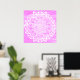 A colorful Poster featuring a Floral White mandala on a watercolor Pink background. The Color Pink represents friendship, affection, harmony and Universal love for oneself and others. It is also a lovely sign for Hope and has a very calming effect on our emotions. Inspiring tenderness. When you look at this Mandala you calm your emotions and start appreciating yourself and others, feeling patience and hope for better days. The White is a symbol of Purity, Spirituality and inspires Order. Original hand-painted by SunFreeStar.