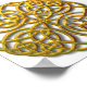 An intricate Celtic knot intertwined to form a circle of a rich antique gold. Computer art by Kathie Miller.