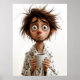 Uma ilustração brilhante e relativa de um homem descascado numa roupagem de banho a agarrar uma xícara de café com olhos largos e cansados. Seu cabelo bagunçado e sua expressão desnorteada capturam perfeitamente o caos das manhãs primitivas antes que a cafeína entre em vigor.
