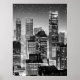 Poster em semiabstrato de ilustração de Manhattan, médio, a preto e branco, iluminado com luzes da cidade, sob um céu estrelado à meia-noite