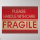 Manípulo vermelho e marrom com cuidado, sinal frágil