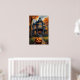 Entre no reino do encantamento do Halloween através deste poster de arte digital cativante. Uma mansão assombrada emerge das profundezas da floresta, exuando uma aura de mistério. O ar é acusado de vibrações assustadoras enquanto você é atraído para seu feitiço. Uma abóbora entalhada na frente adiciona um toque estranho, convidando-o a abraçar o espírito da estação.