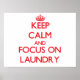 Use a ferramenta de busca na minha loja para encontrar outra mercadoria de lavanderia. Mantenha a calma e concentre-se nos produtos de lavanderia disponíveis em camisetas, camisas de suor, camisas de criança, crianças, adesivos, ímanes e muito mais roupas de lavanderia totalmente personalizáveis para suas especificações. Se você gosta do que vê, por favor, conecte-se à minha loja (www.zazzle.com/shirtsforall) ou envie um e-mail para um amigo.