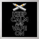 Humor de vaper. Mantenha-se calmo e continue paródia com os modelos cruzados de 18650 e o ditado "Mantenha-se Calmo e Vape Ligado"