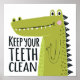 Esta mão desenhada apresenta um crocodilo sorridente com uma frase promotora de saúde.