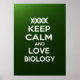 Um poster que apresenta o slogan de manter a calma e amar a biologia, um presente excelente para todos que amam a biologia