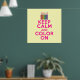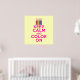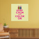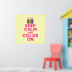 Mantenha a calma e a cor ligada. Relaxe por coloração com lápis de cor, lápis de cor e pastéis. O rosa mantém a letra calma sobre um fundo amarelo claro com um conjunto de lápis coloridos no topo.