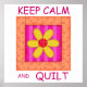 Mostre o seu amor por colchar com este bloco colorido, divertido e colorido, proclamando "Mantenha Calma e Quilt". Este design é uma arte original em forma de colcha com um bloco colorido de retalhos de flores de apiqué. A palavra "colcha" é fácil de mudar para outra palavra da sua escolha. O design de colcha está em cores vibrantes e dinâmicas de laranja, amarelo e rosa para uma bela paleta colorida. Totalmente personalizável para personalizar. Quilt art é a arte original da designer de tecidos e colchas Phyllis Dobbs. Esta arte está disponível em outros produtos e em vários planos coloridos e também está disponível em mais produtos Keep Calm com diferentes cores. Mais produtos estão disponíveis na loja BusinessWithFlair da Phyllis.