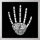 Mão esquelética com espirais na Palma. Místico, mágico, você é o juiz.