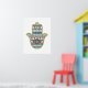 Mão de Fatima, símbolo amuleto, padrão asteca tribal. Hamsa é símbolo talismânico de uma mão com um olho na palma, que se acredita proteger contra danos contra as forças mau e trazer bondade, abundância, fertilidade, sorte e boa saúde. Padrão geométrico triangular da etnia Navajo, triângulos, listras, quadrados, formas de diamante, azul claro, azul escuro, vermelho claro, vermelho escuro, amarelo, laranja, azul-pavão, azul-pavão, verde-aqua, branco-mole e brilhante no outono, cores de inverno, fundo claro. Americano, tradicional, nativo, mexicano, símbolo, indígenas, abstrato, moda, popular, arte, design, ilustração, fofo, fantasia, espiritual, decoração, elegante, elegante, vintage, retrô, ornamento. Personalize-o com seu nome de palavra ou frase favorita, ou altere a cor do plano de fundo, clicando no botão personalizar e adicionando texto, escolha a fonte e a cor do texto. Impressão de imagem