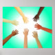 Ilustração de um grupo de mãos diversas de diferentes culturas e nacionalidades se alcançando e tocando. Design conceitual mostrando pessoas se juntando e dando ajuda e suporte uns aos outros. Imagem disponível em vários presentes e produtos.