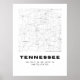 Poster Map Art do Tennessee - preto e branco