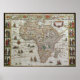Vintage ilustration antigo world map que apresenta o continente africano e a ilha de Madagascar. Por Willem Jansz Blaeu (1571-1638) em c. 1635. Willem Janszoon Blaeu era um cartógrafo holandês, fabricante de atlas e editor. Os oceanos Atlântico e Índico têm navios navegando pelos mares para viagem e navegando pelo globo. Ao redor deste gráfico internacional africano estão pessoas vestidas de fantasias nativas e ao longo da borda superior estão mapas de cidades menores.